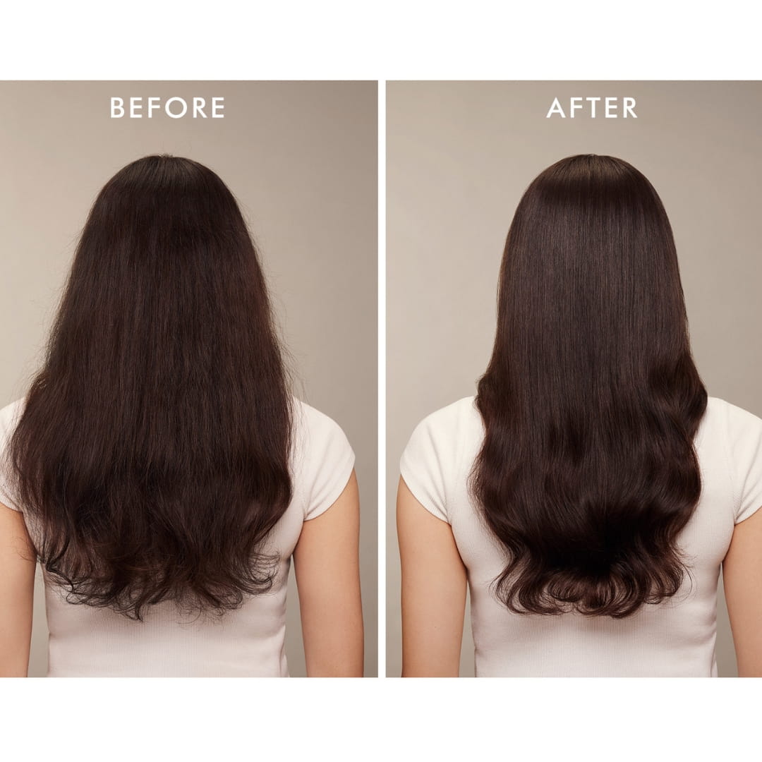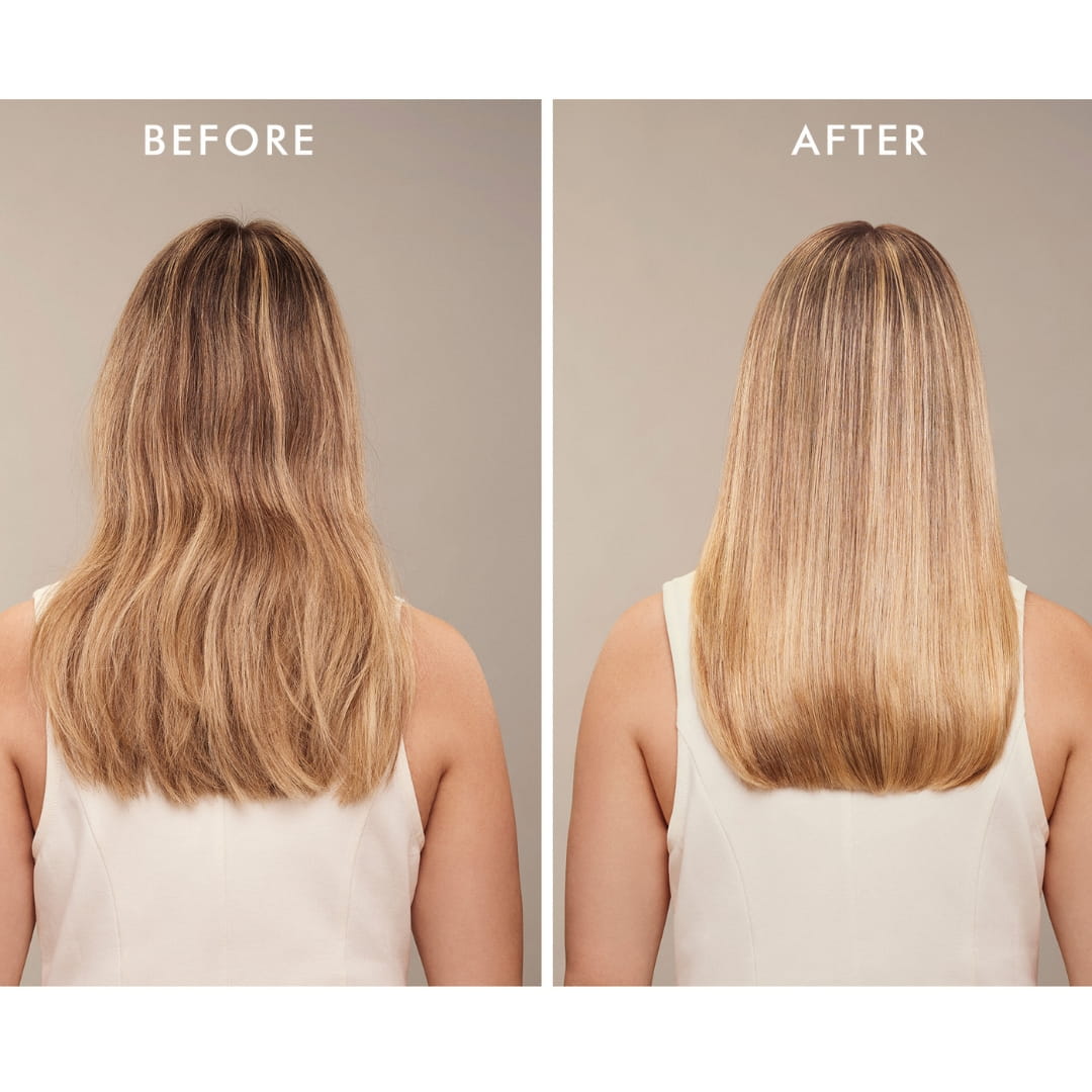 Na mokre włosy: spryskaj pasma od połowy długości po końce, aby przygotować je do stylizacji i skrócić czas suszenia, następnie wysusz suszarką lub ułóż włosy jak zwykle. Na suche włosy: rozpyl od połowy długości po końce, aby wygładzić, ujarzmić odstające kosmyki i nadać im intensywny połysk
