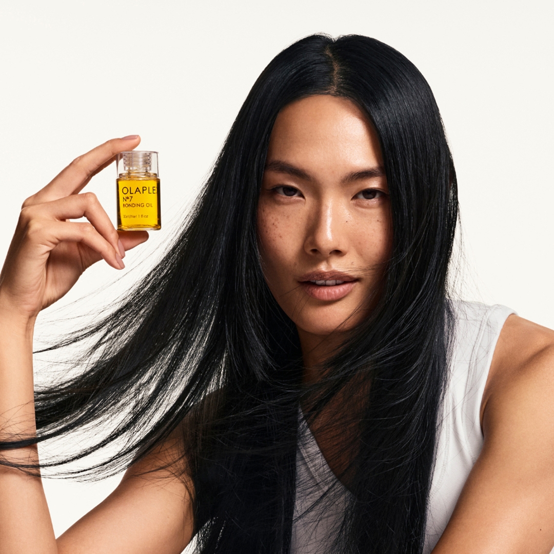 Nałóż niewielką ilość Olaplex No.6 na wilgotne włosy (przed suszeniem) lub na suche i stylizuj włosy tak, jak lubisz. Zaaplikuj kilka kropel Olaplex No.7 na wnętrze dłoni, rozetrzyj i rozprowadź na długościach i końcach. Możesz również połączyć Olaplex No.6 z kilkoma kroplami Olaplex No.7 i rozprowadzić na długości i końcach włosów (na mokre bądź suche włosy).