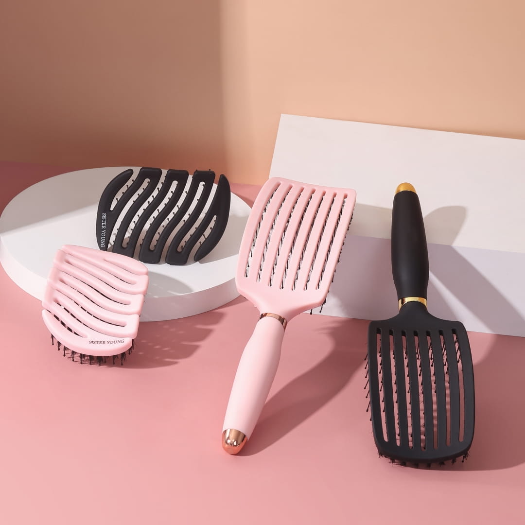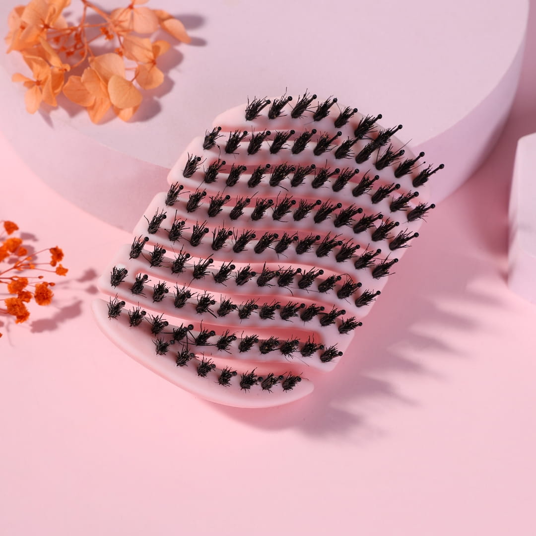 Sister Young MILA Pocket Pink – kieszonkowa szczotka do włosów z włosiem dzika i nylonowymi szpilkami