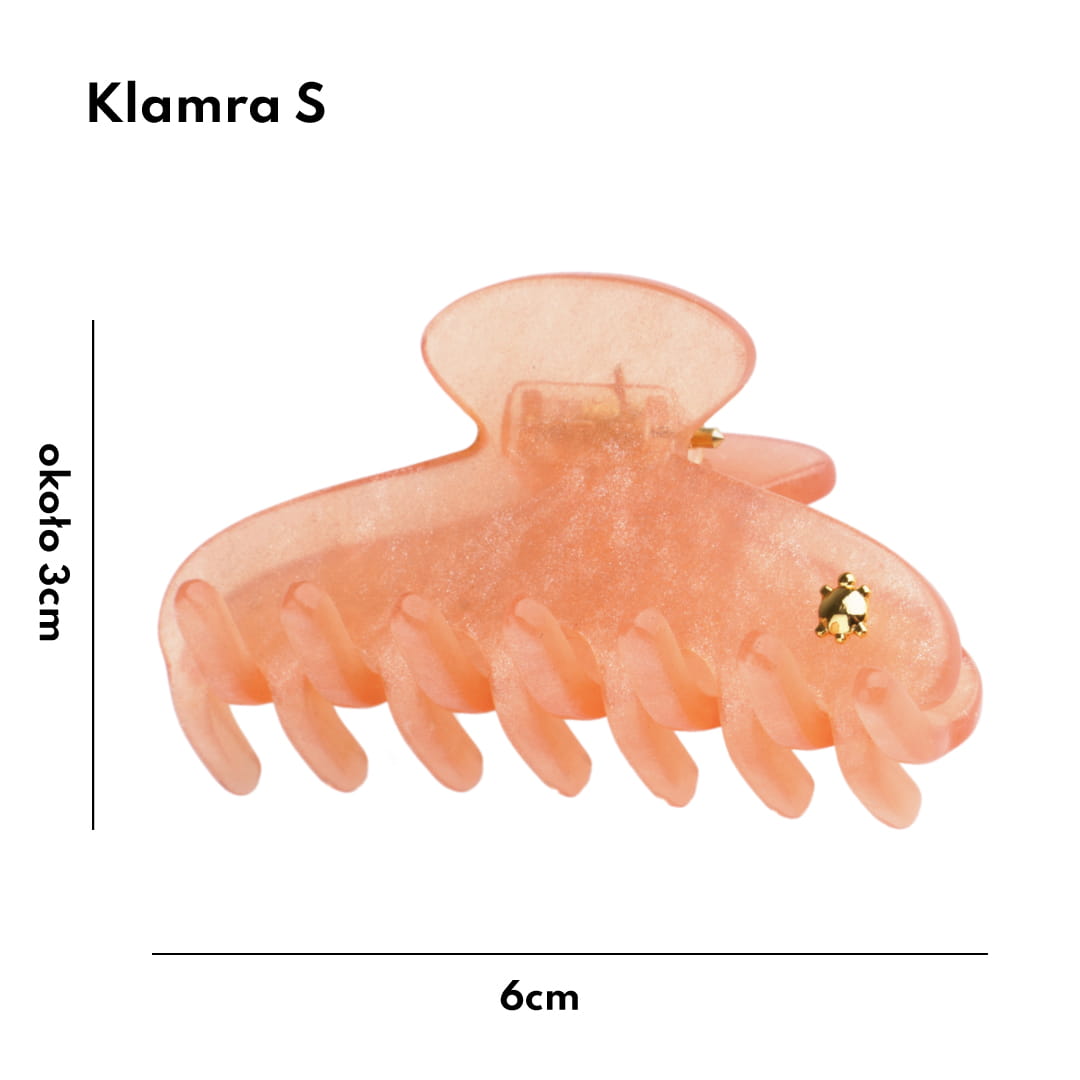 Turtle Story Hair Jaw Apricot to ręcznie wykonana, wysokiej jakości klamra do włosów w rozmiarze S - 6 cm. Klamra została wykonana z najwyższą starannością o detale i zaprojektowana z myślą o kobietach, które cenią sobie jakość i oryginalność. Klamra stworzona została z włoskiego "szylkretu" inaczej zwanego "tortoise shell." To wyjątkowe, hipoalergiczne, wegańskie tworzywo znane jest ze swej wyszukanej estetyki oraz trwałości. Każda ozdoba jest formowana, dekorowana i polerowana ręcznie. To idealny dodatek do każdej stylizacji.