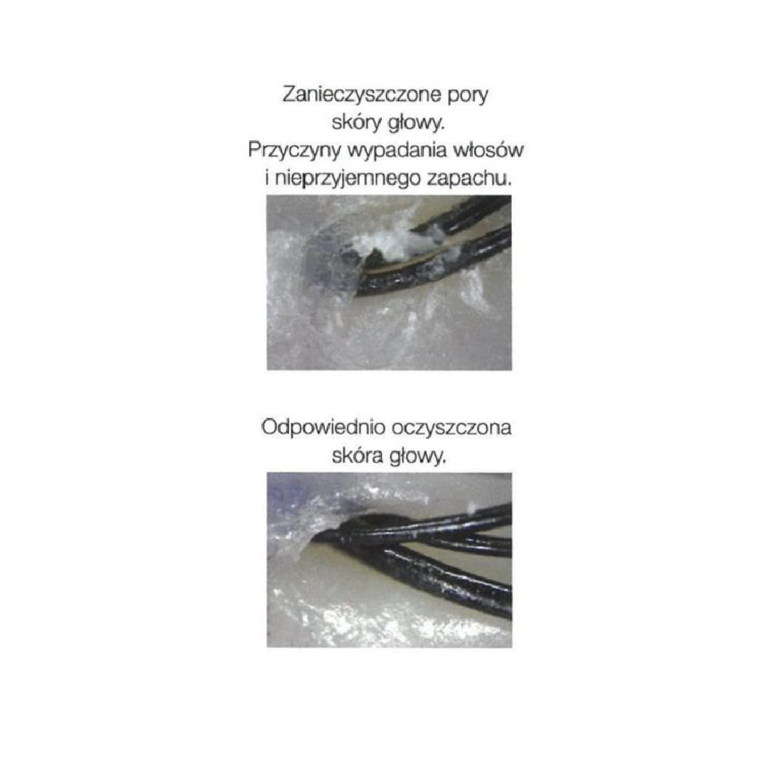 - dokładnie oczyszcza skórę głowy z sebum i zanieczyszczeń,